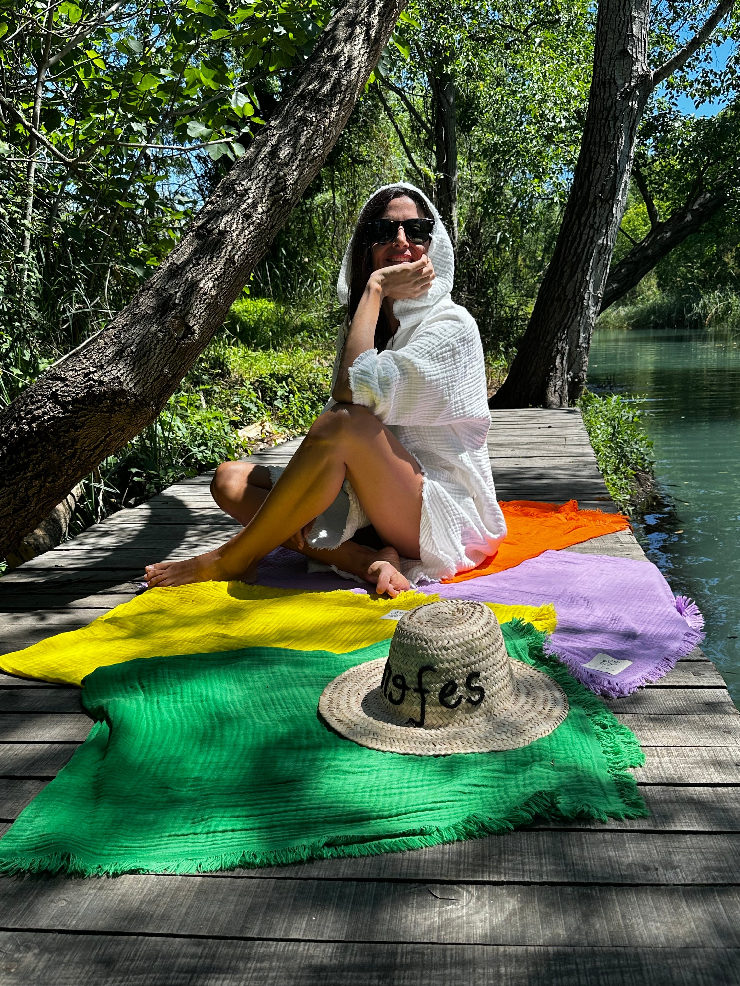 With high absorbency and a breathable structure, it is especially suitable for sensitive skin. It can be used as a towel, pareo, or shawl — making it a practical and stylish essential for everyday use or travel.