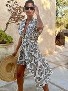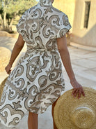 Short-sleeved, one size fits all, loose fit, matching fabric belt , 100% organic cotton fabric, made in Turkey.