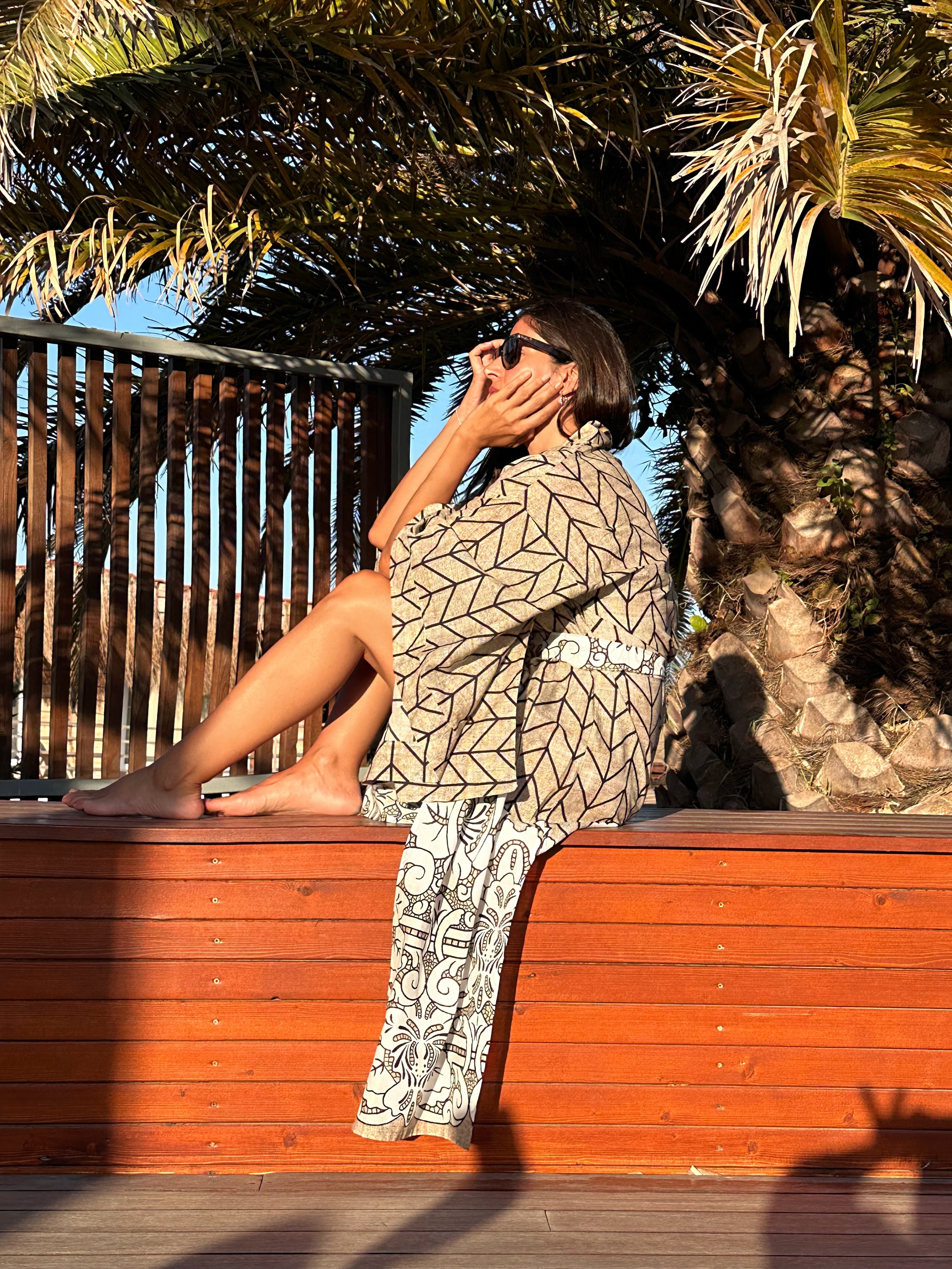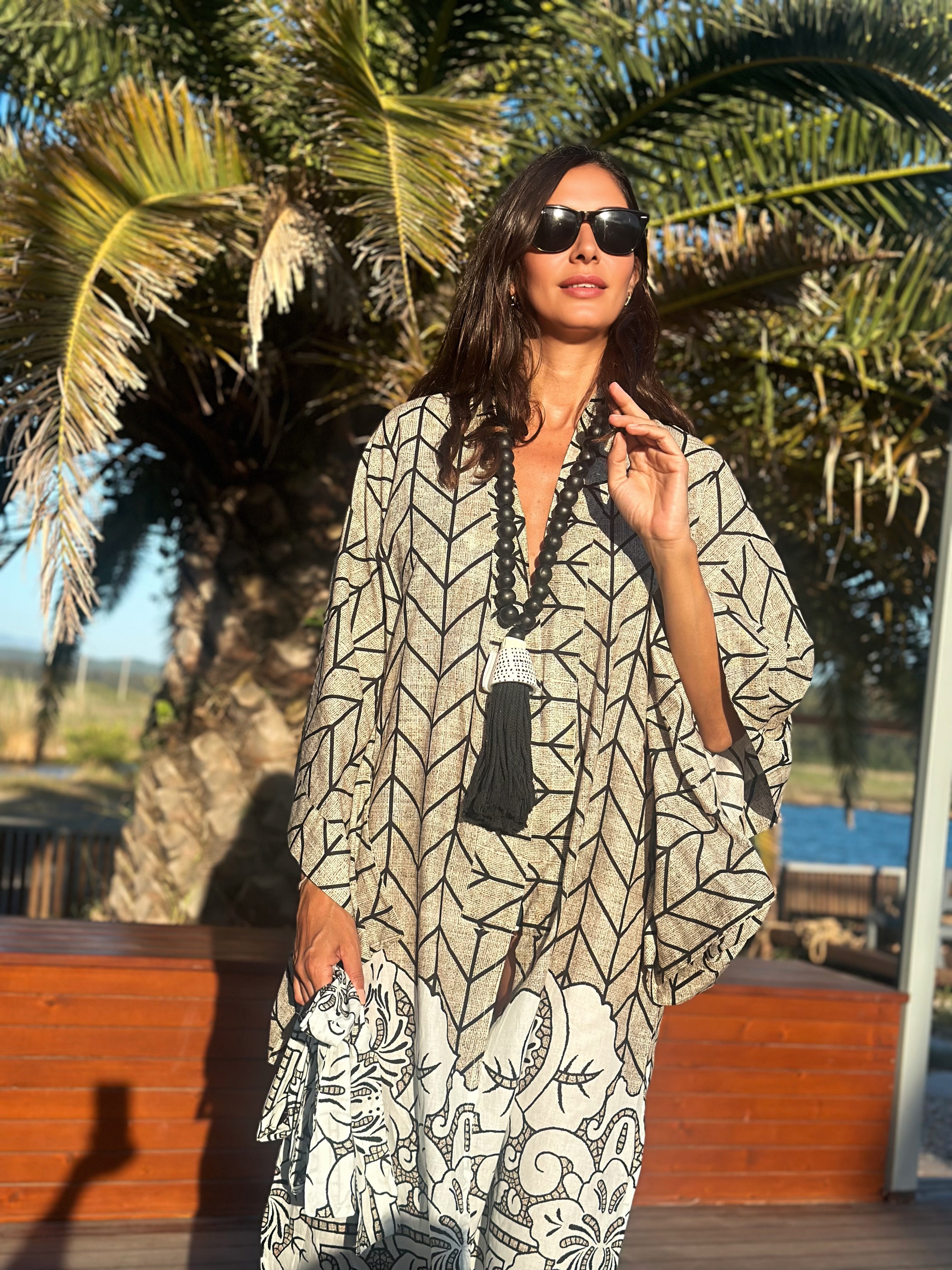 One size fits all, loose fit, matching fabric belt , long length, 100% organic cotton fabric, made in Turkey.