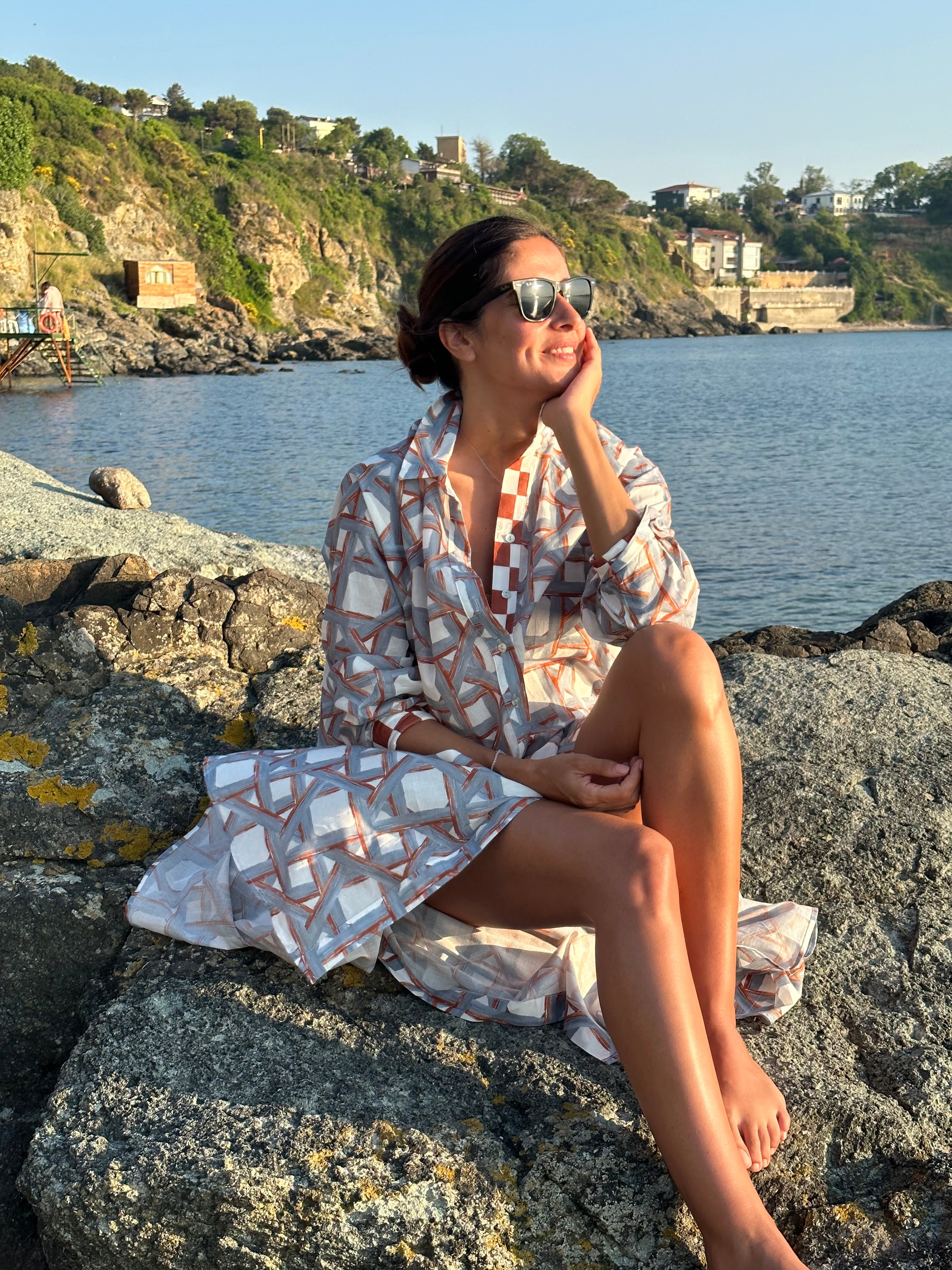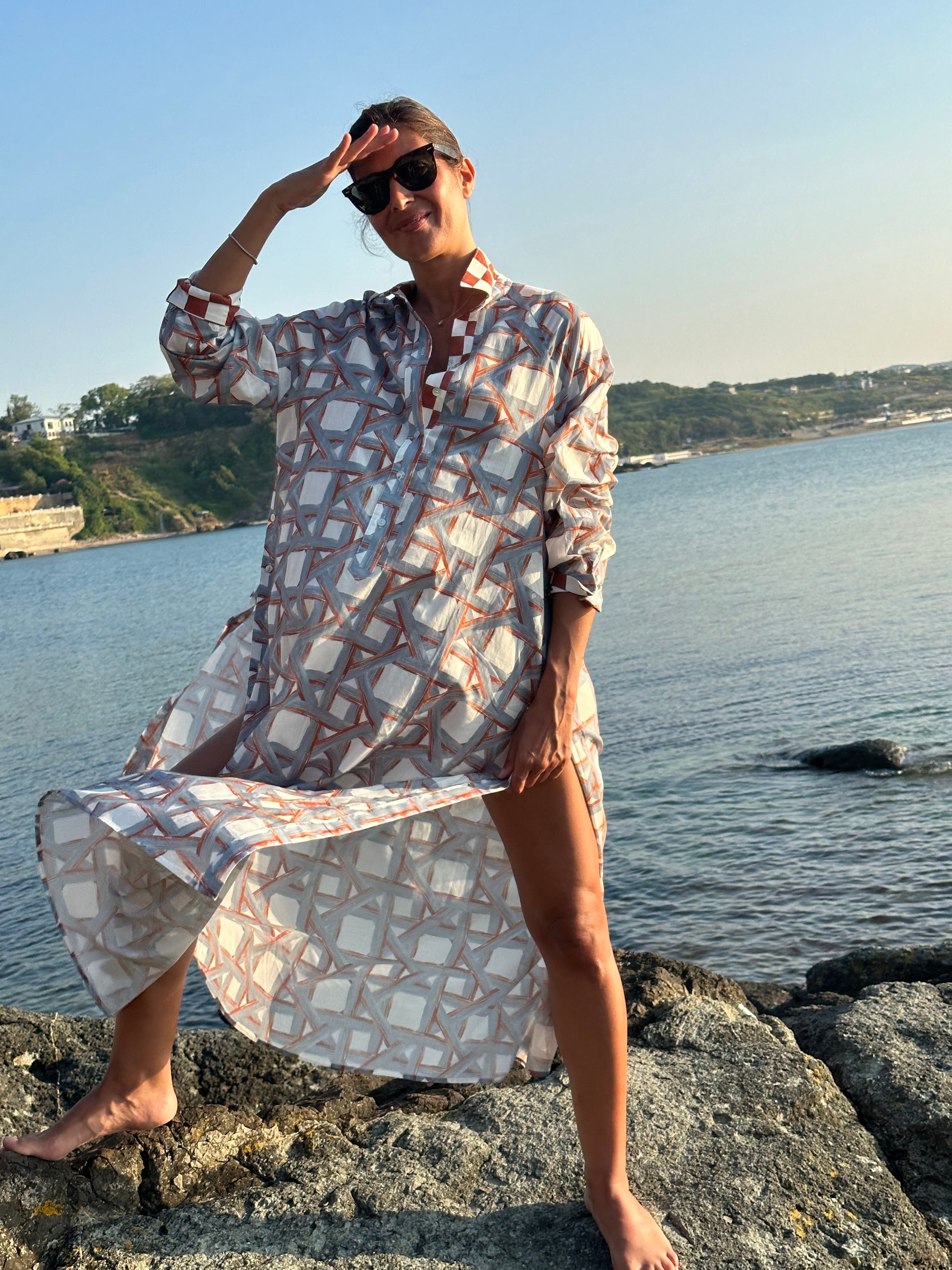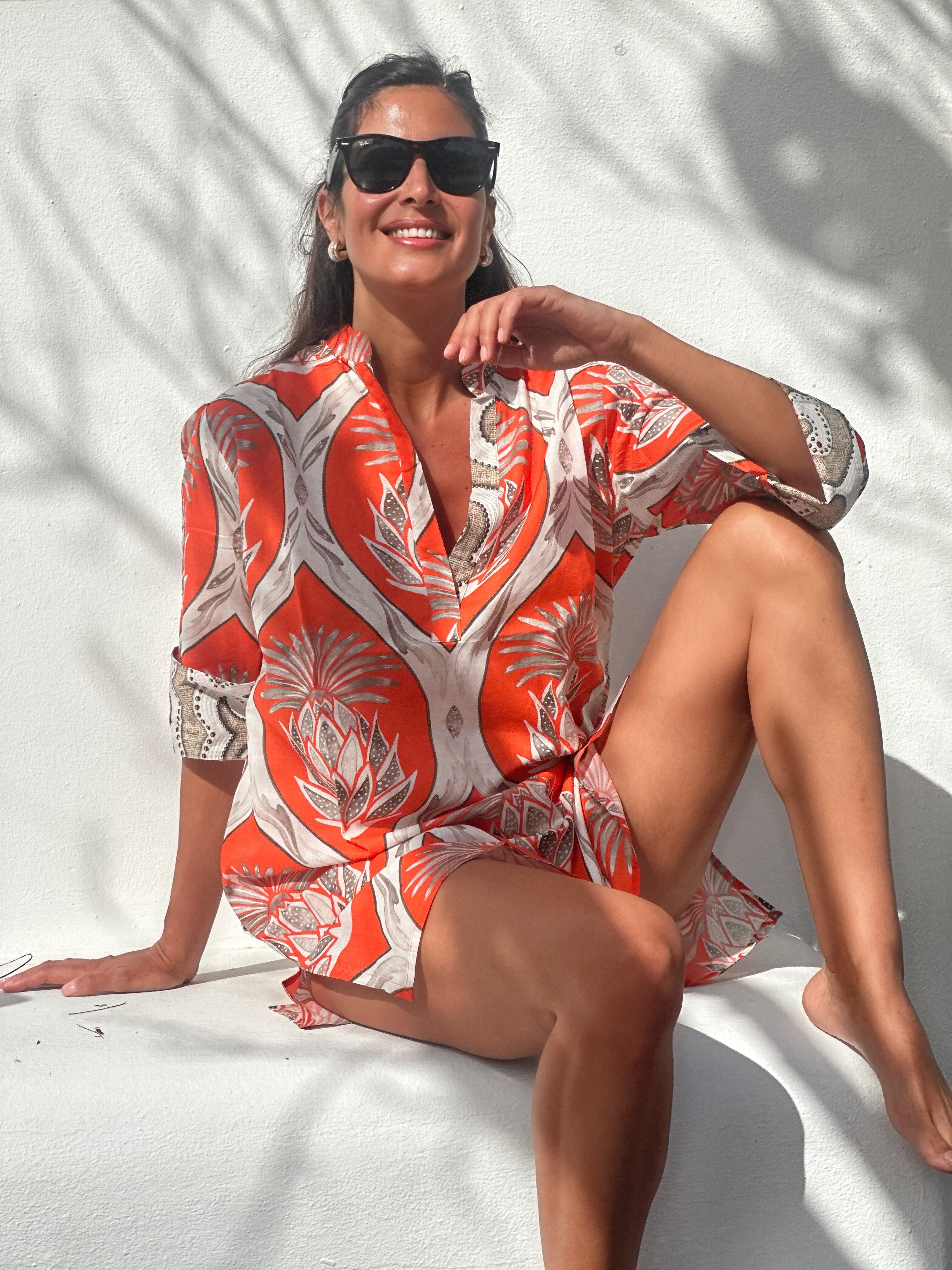 Mila Shirt Dress Sea Shells Coral