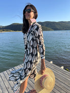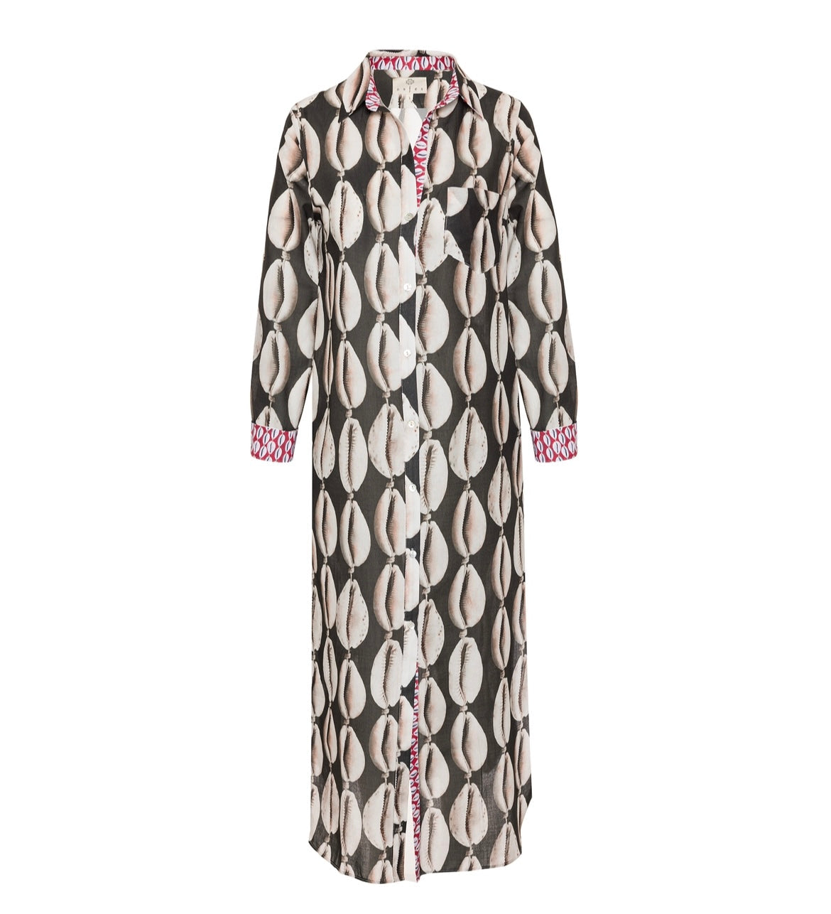 Collared long shirt dress , button-up front, standard fit, contrast fabric inside front placket and cuffs, 100% organic cotton, made in Turkey.