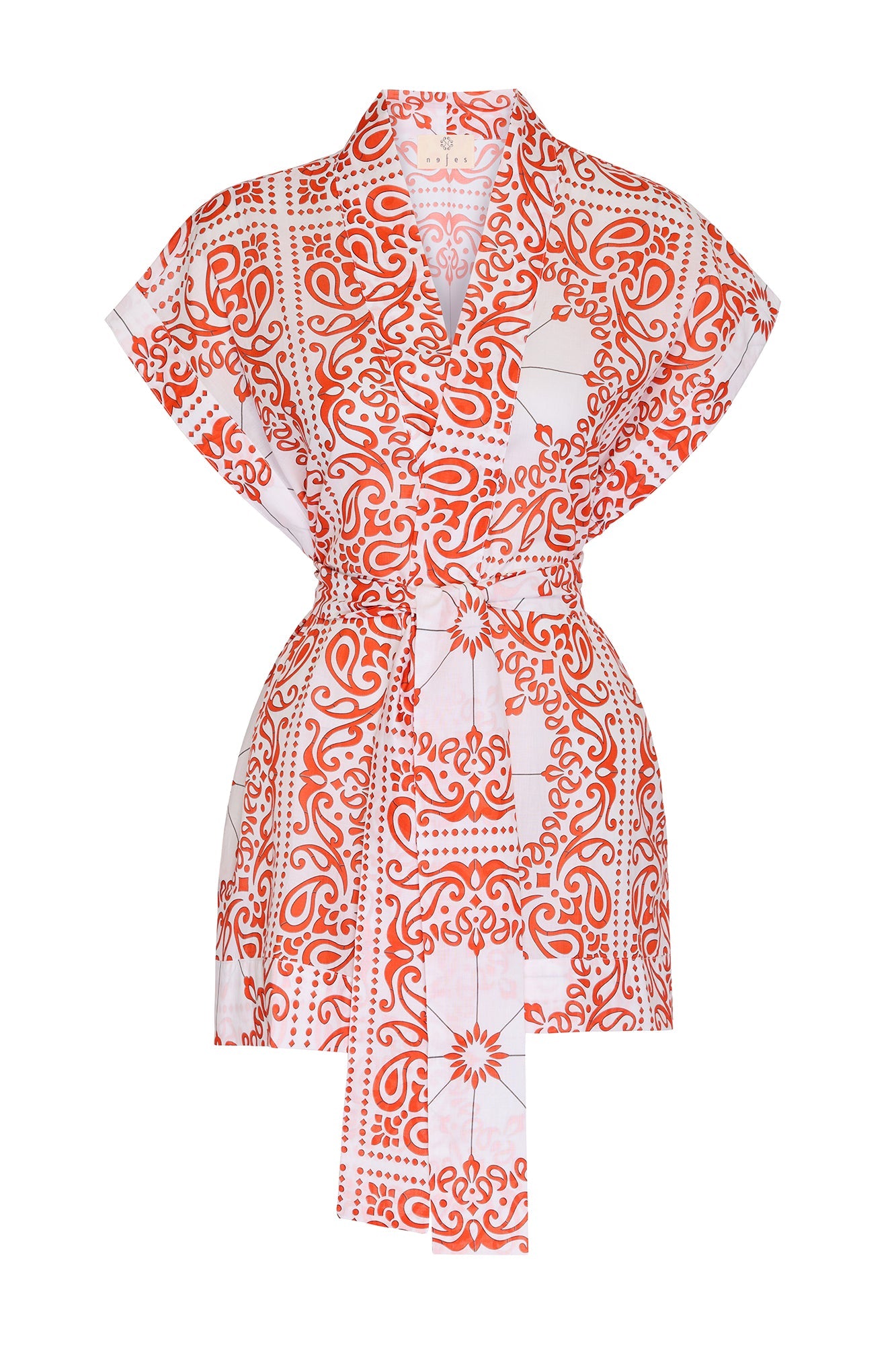 Short-sleeved,loose fit, hip length vest with a matching belt.