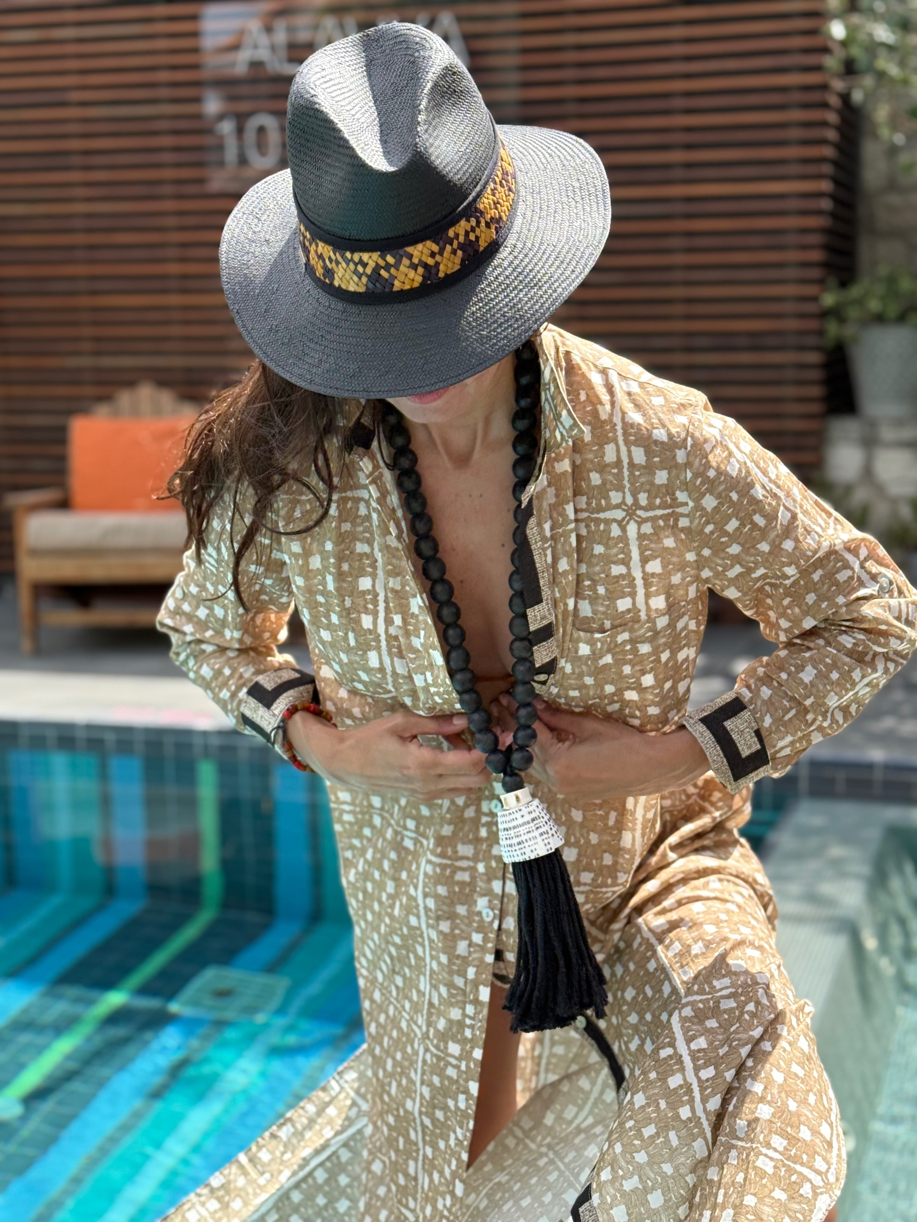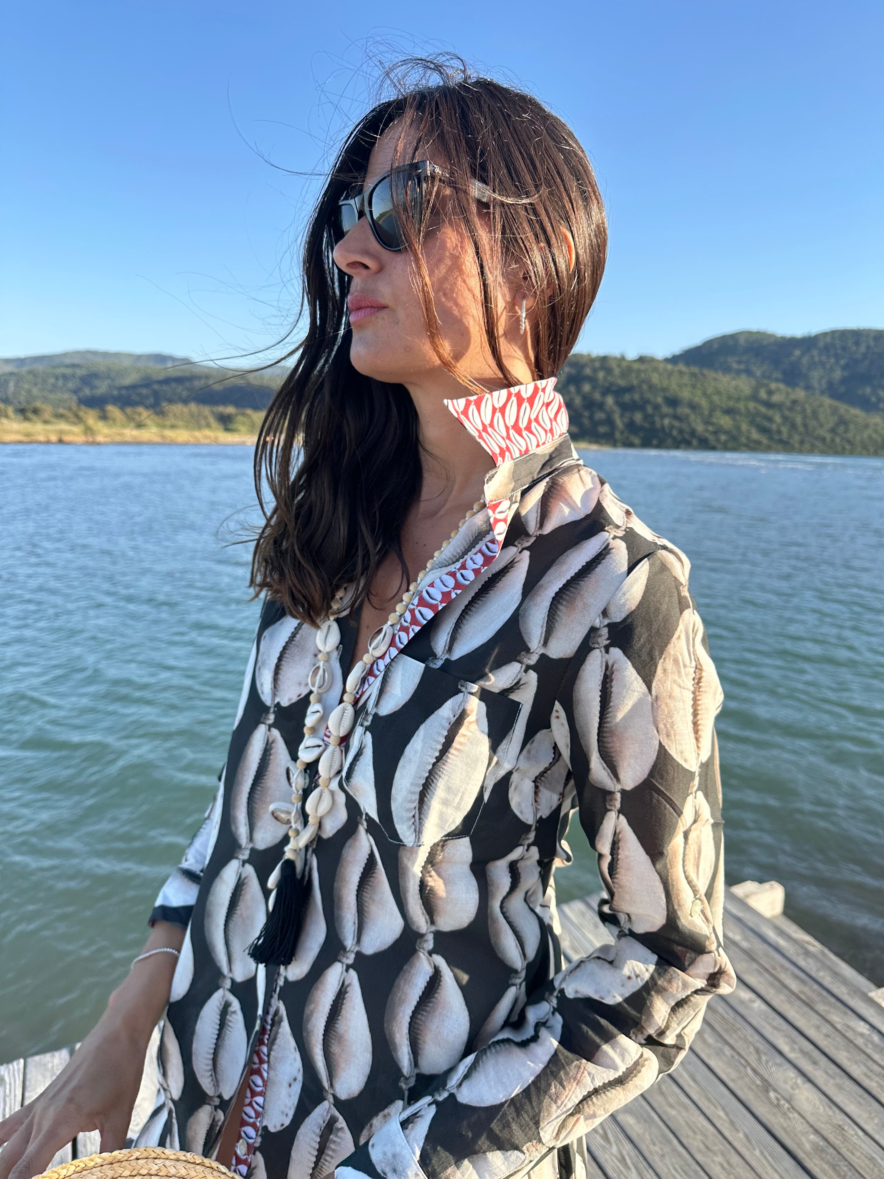 Karel Shirt Dress Cowrie Shell Black