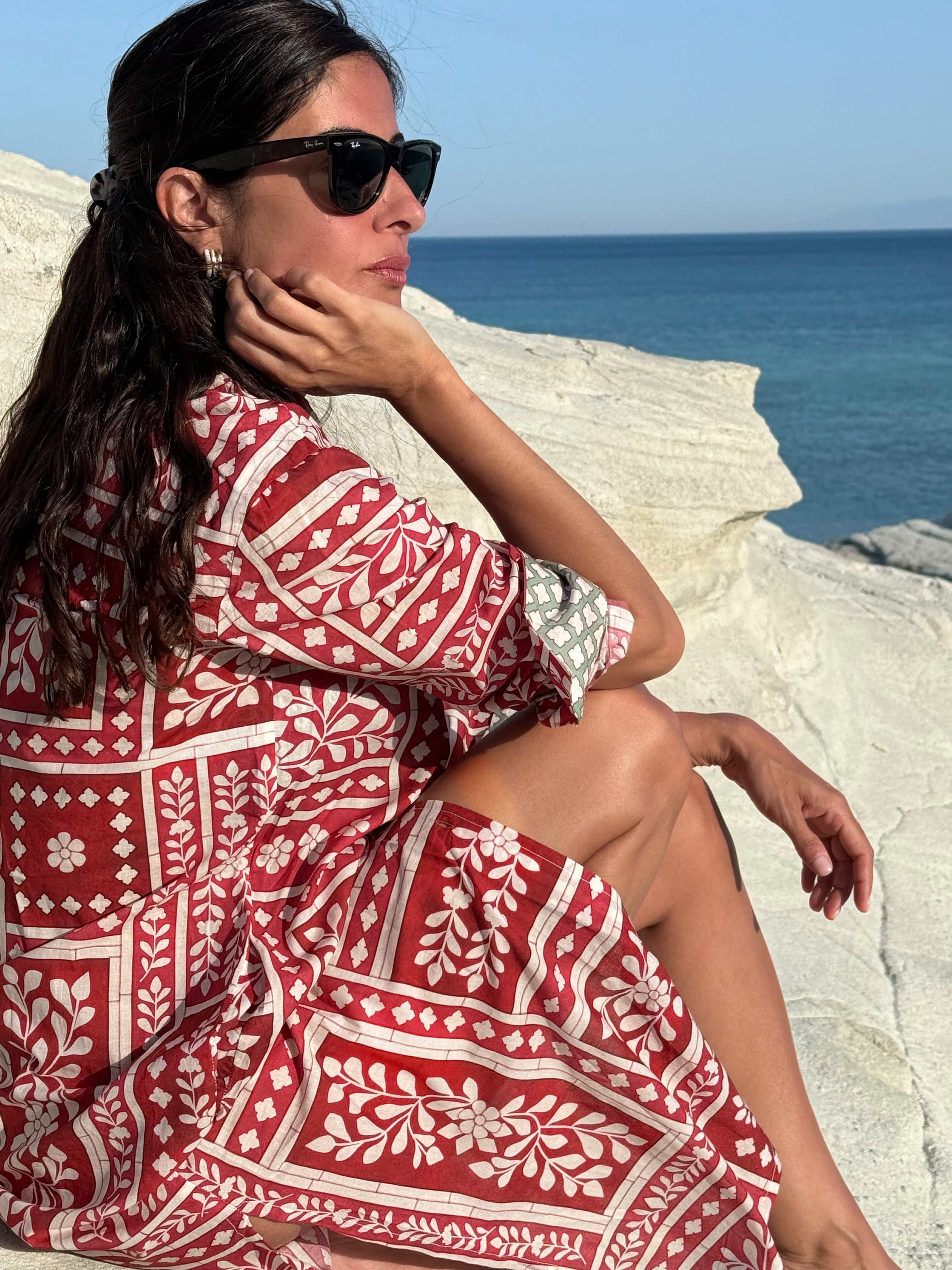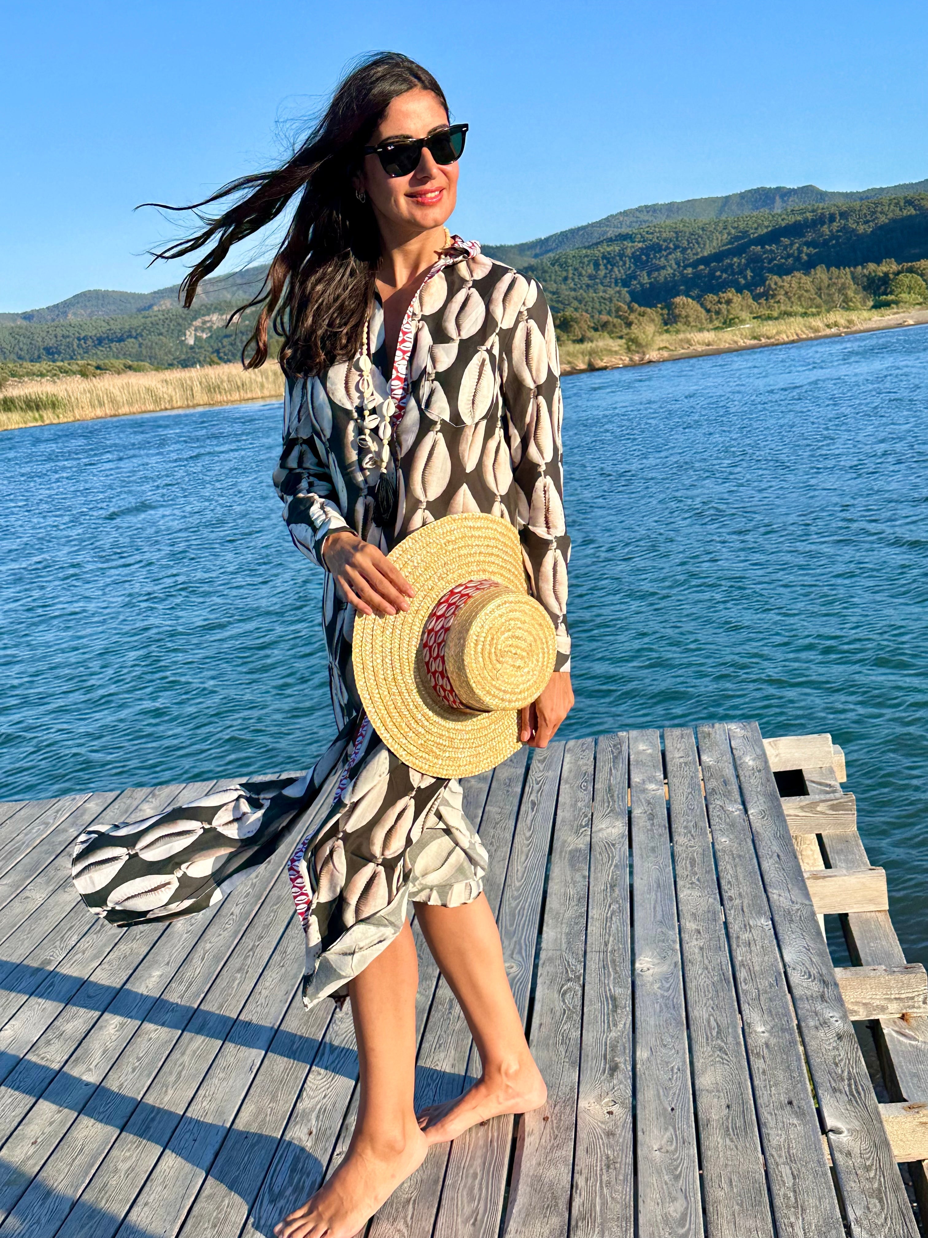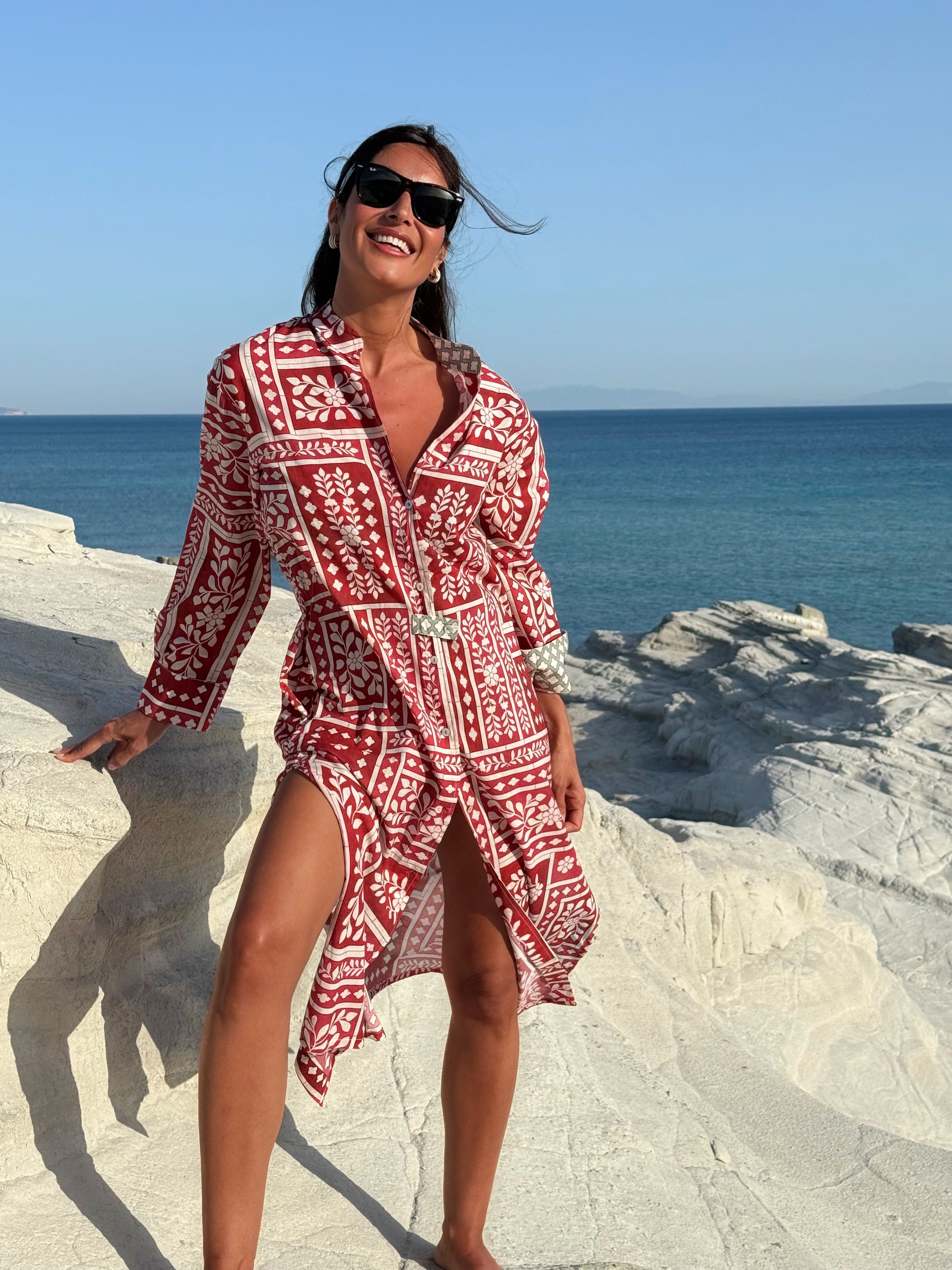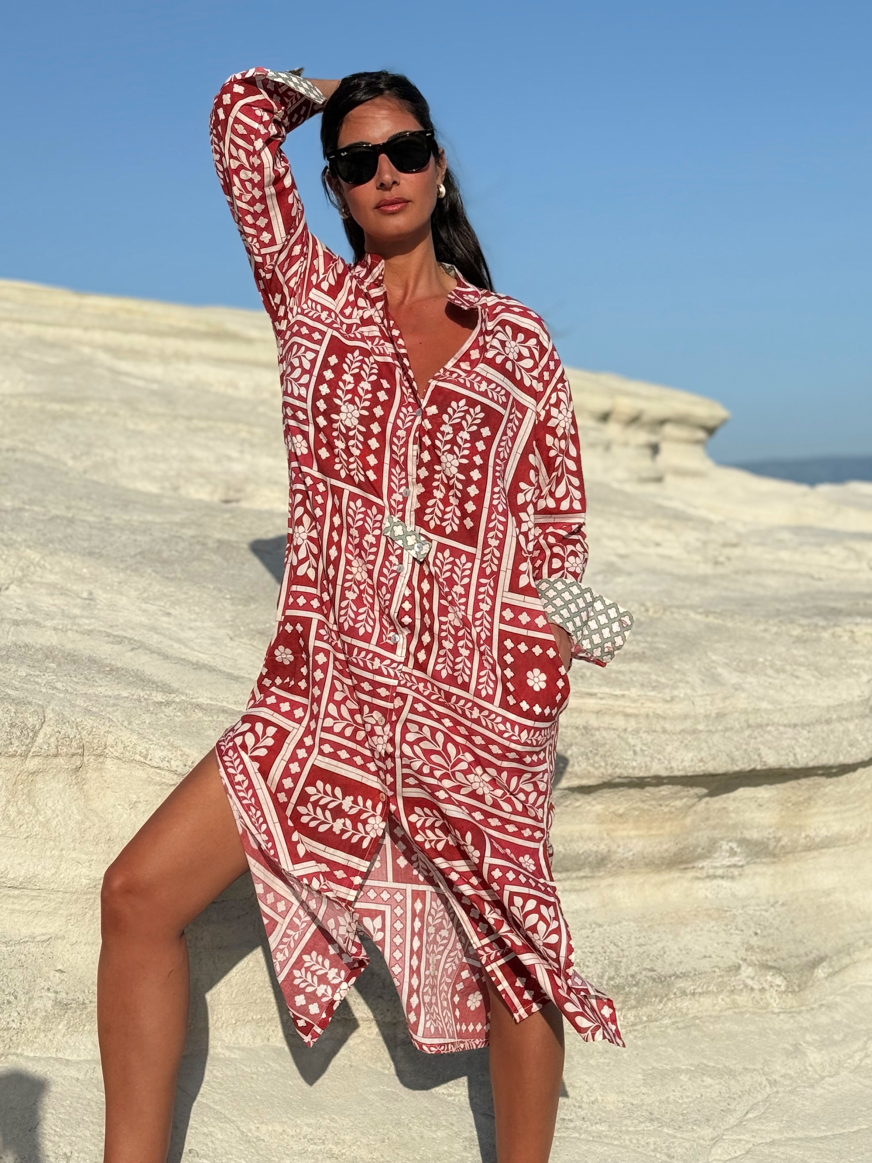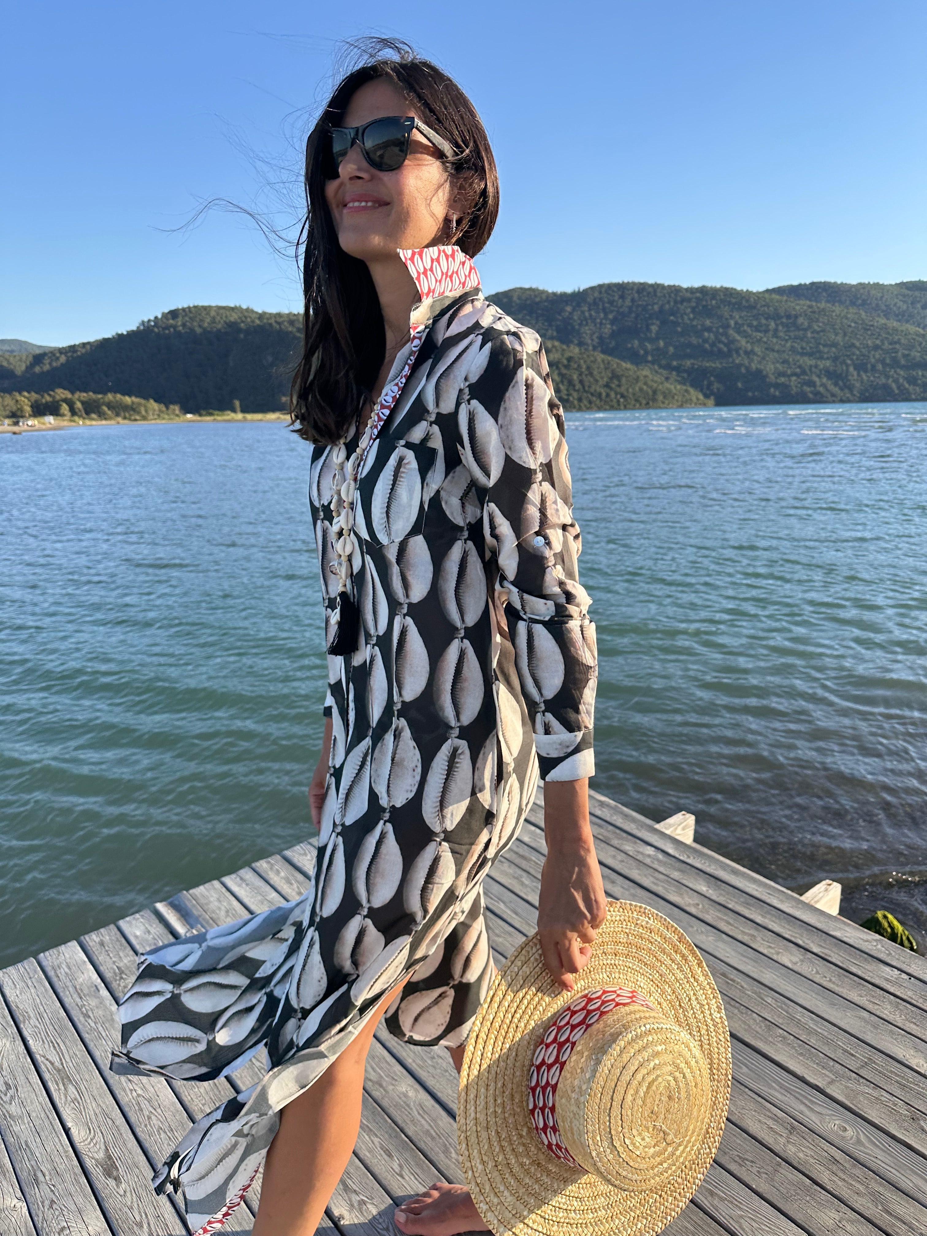 Mara Shirt Dress Cowrie Shells Coral