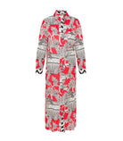 Collared long shirt dress , button-up front, standard fit, contrast fabric inside front placket and cuffs, 100% organic cotton, made in Turkey.