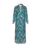 Collared long shirt dress , button-up front, standard fit, contrast fabric inside front placket and cuffs, 100% organic cotton, made in Turkey.