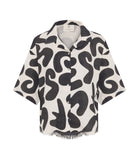 Buttoned from the front, wide fit, 3/4 arm length, raw edge finished shirt