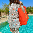 One size fits all, loose fit, matching fabric belt , hip-length, 100% organic cotton fabric, made in Turkey.