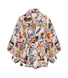 One size fits all, loose fit, matching fabric belt , hip-length, 100% organic cotton fabric, made in Turkey.