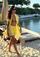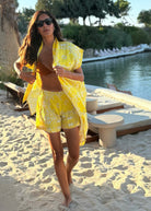 Bandana‑print denim‑effect shorts, with their relaxed cut and eye‑catching design, are a special piece that captures the energy of the summer season. Lightweight and breathable, they offer maximum comfort in warm weather, while the patterned surface adds a dynamic touch to your style. The elasticated waistband makes them easy to pull on and off, making them ideal for everyday wear.