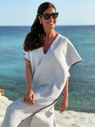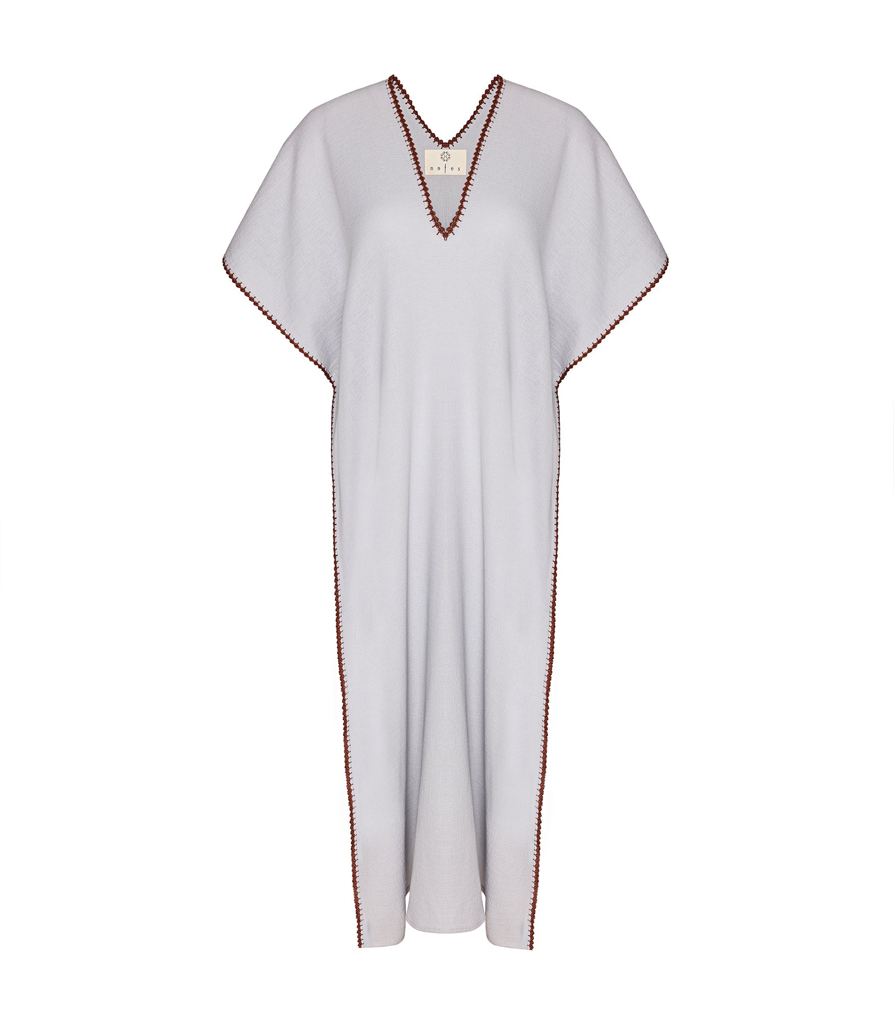 Hand needled embrodered , muslin V neck long dress.