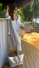 Deep V-neckline, one size fits all , long length , 100% cotton fabric, made in Turkey.